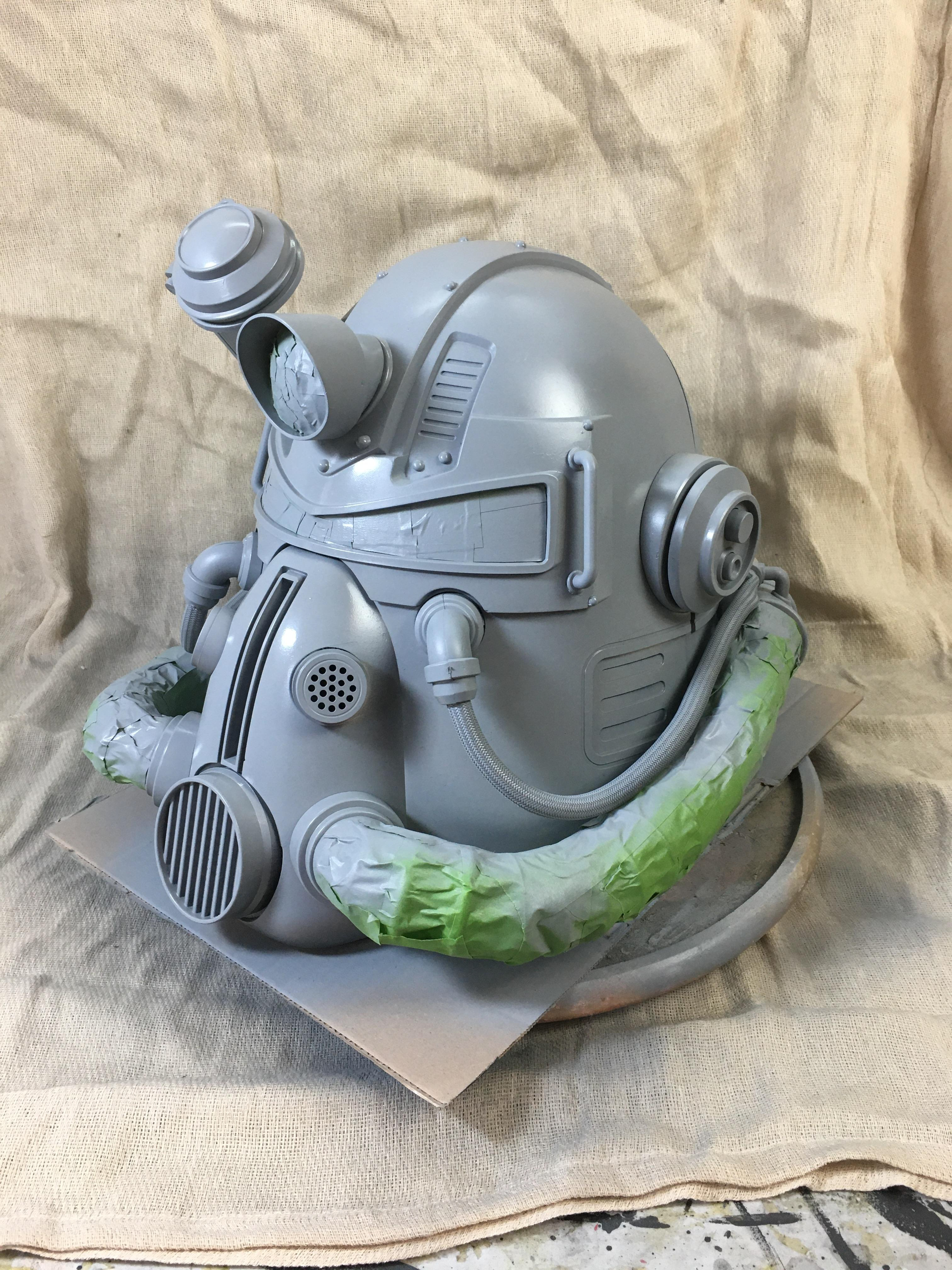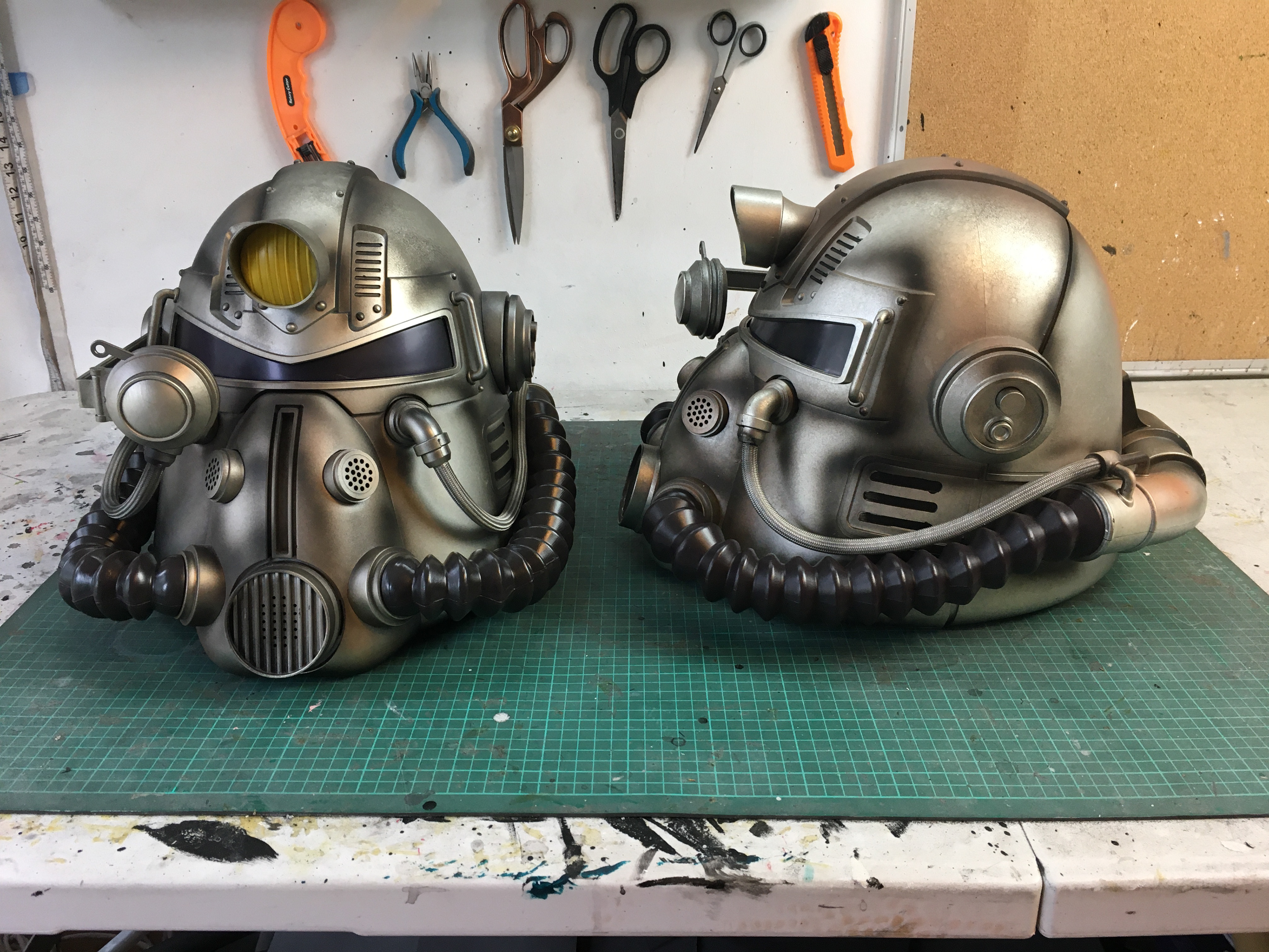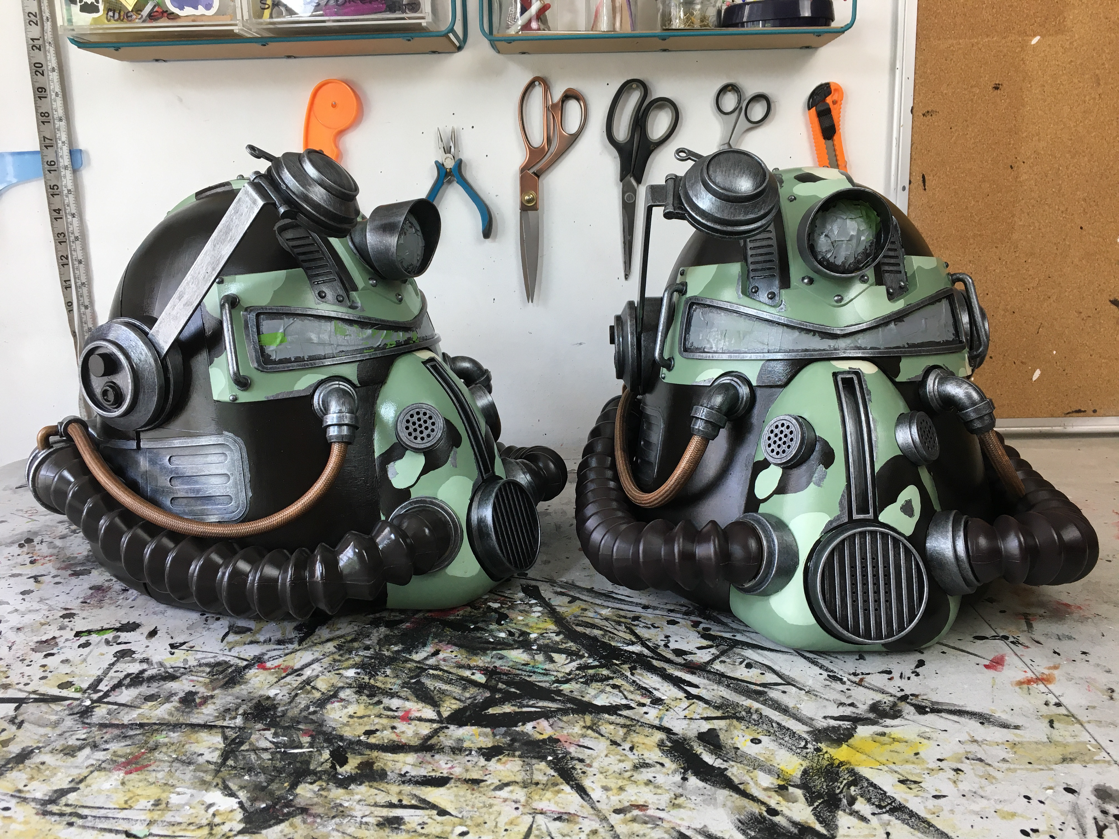 Customised collectors edition helmets created in collaboration with Bethesda UK for the promotion of 'Fallout 76: Steel Dawn' (2021). Collectors edition helmets were provided, which were then painted and customised by Isa.